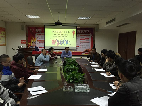 12月29日晚,湖南天欣科技有限公司与taptap点点材料学院于公司会议室召开“职业与人生”座谈会,在此实习的无机非金属材料工程专业2014级44名学生参加。