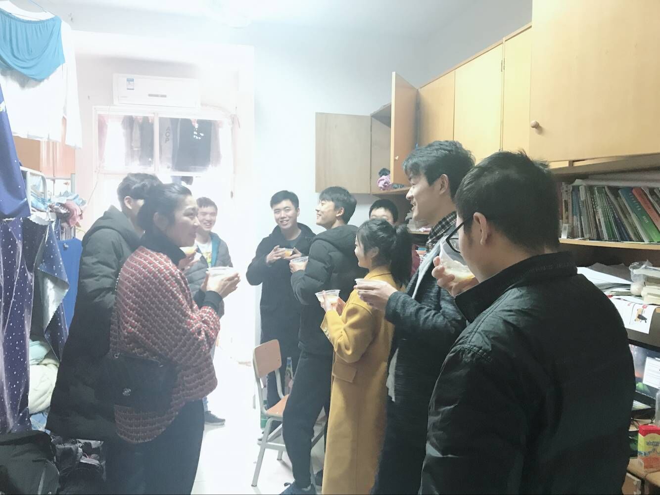 首先,他们来到了大四寝室,在给他们送上汤圆的同时也了解到大家的考研状况和接下来的打算,为大家复试,调剂和就业方向做初步的指导。紧接着来到大三寝室,和大家亲切交谈,热闹度过元宵节。最后,在热情的大三学生的陪伴下,老师们又给大二大一的学弟学妹们送去了温暖,场面其乐融融,十分温馨。