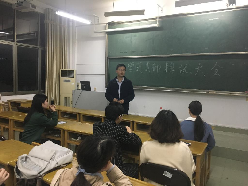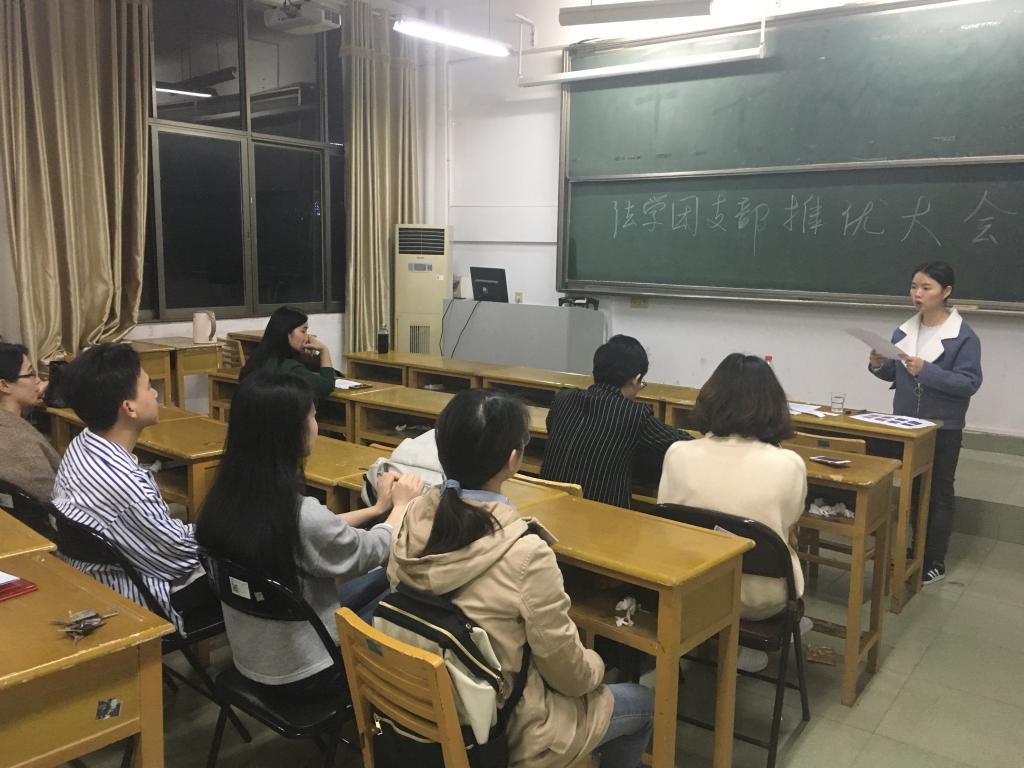3月15日晚,在金盆岭校区7教314、7教319教室分别召开了文学团支部、法学团支部推优大会,辅导员刘阳及30余名团员参加会议。