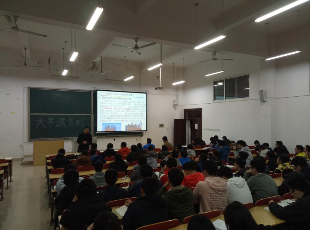 最后,他鼓励同学们参与到学校大学生结构设计竞赛团队,不断提高理论和实践能力。通过本次讲座,同学们纷纷表现出极大参与学科竞赛的兴趣。