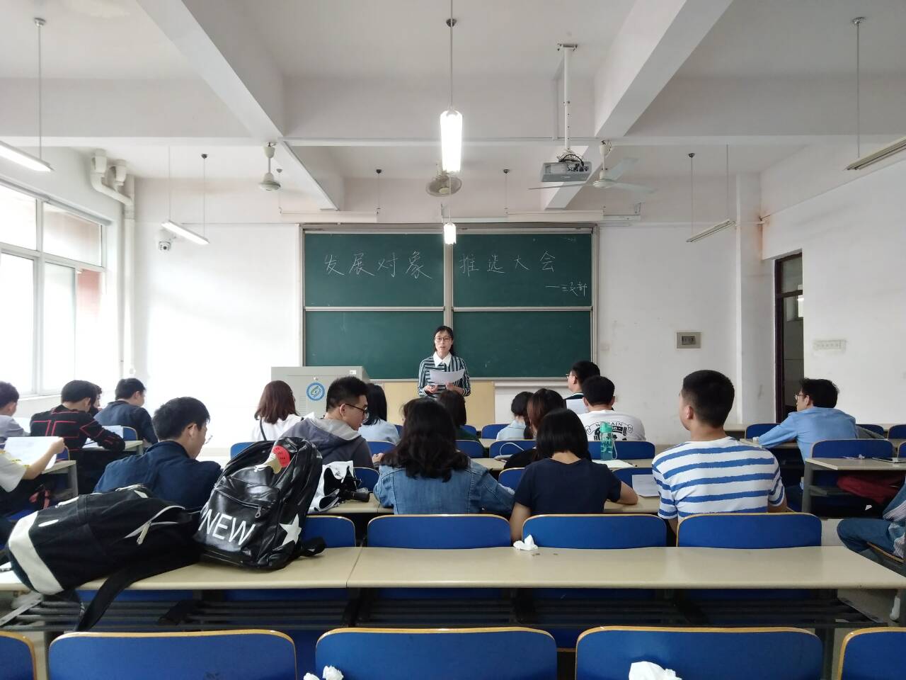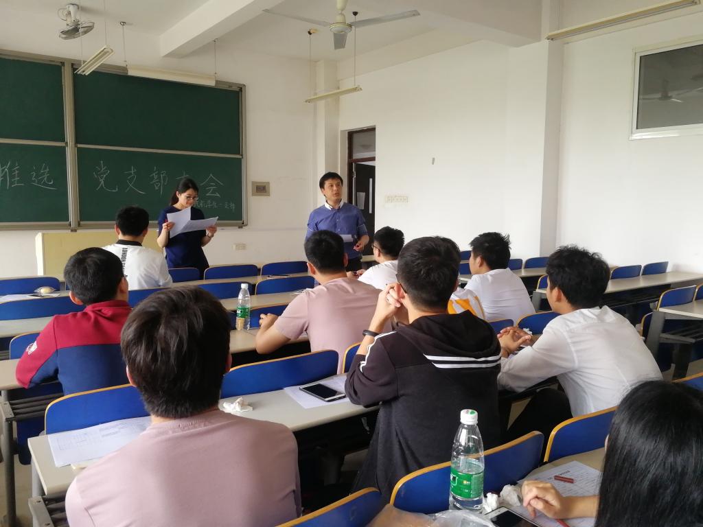 4月11日中午,汽机学院学生各党支部优秀团员推选大会在工一B区教室召开。会议由各支部副书记主持,学院党委书记邱国良、副书记靳攀科、全体党员和各支部发展对象候选人参加。
