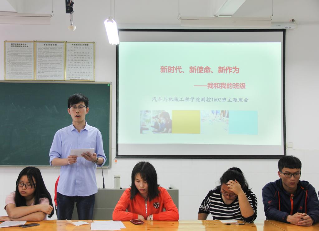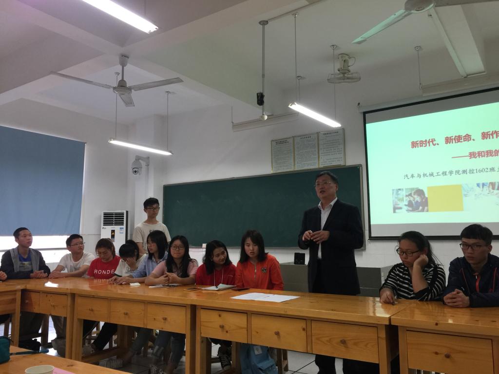 4月17日下午,汽机学院测控1602班在工科一号楼B412召开“新时代、新使命、新作为——我和我的班级”主题班会,副校长谈传生莅临指导。院党委书记邱国良,院长杜荣华,党委副书记靳攀科,班主任张玉萍,年级辅导员易敏,以及测控1602班全体同学参加。学院班主任代表,2016级、2017级各班班长和团支书现场观摩此次班会。