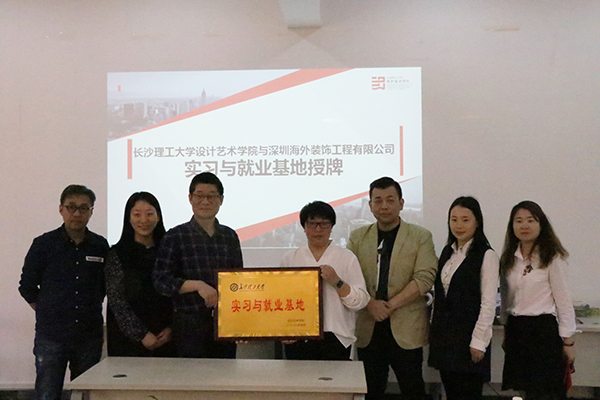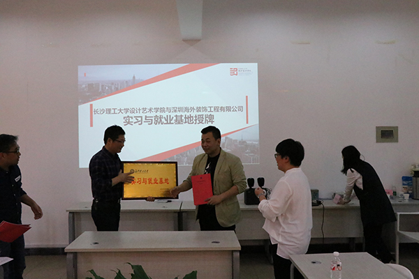 接着,双方就合作形式、渠道、流程等细节进行了沟通交流。经过长时间的讨论,最终双方达成共识并签署了校企合作协议,由欧阳国辉为深圳海外装饰工程有限公司进行就业与实习基地授牌。