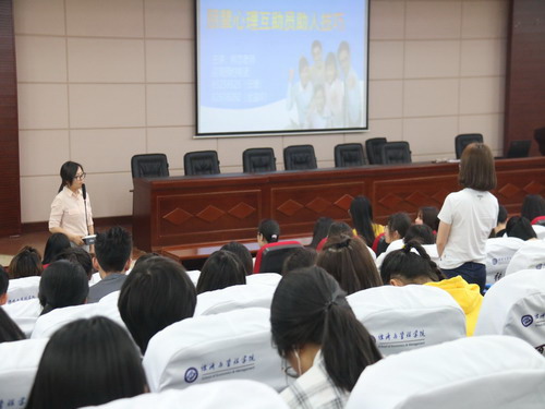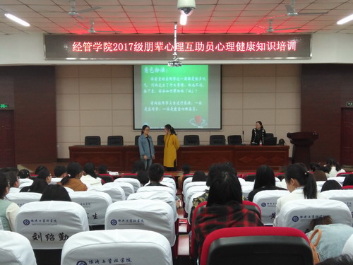培训之前,学院学工办召开了专题会议进行培训工作布置,强调培训的重要性,对培训考勤等做了具体安排。学院要求各班要做好培训动员、加强培训管理、严格培训考核,确保培训的顺利进行。对因故无法上课的朋辈互助员,学院合理安排批次补课,安排干部跟进考勤,有效保证了学院189名新生的培训听课率达到了100%。培训由经管学院心理辅导员李丽兰老师主持,培训老师分别为化学学院心理辅导员江洁、交通运输学院心理辅导员陶传谱、心理健康教育中心熊恋。