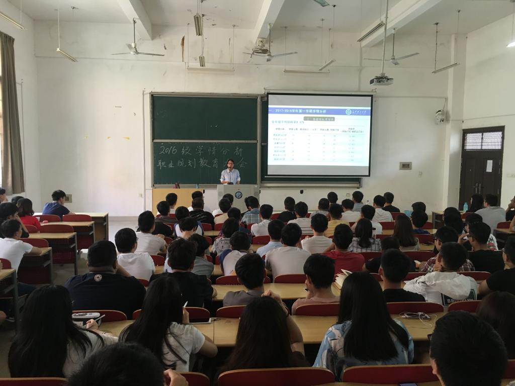 5月8日下午,能动学院在工一A-106分批次召开了2016级学情分析暨职业规划教育大会。会议由学工办辅导员汪华丽、代佳欣主讲,16级全体学生参加。