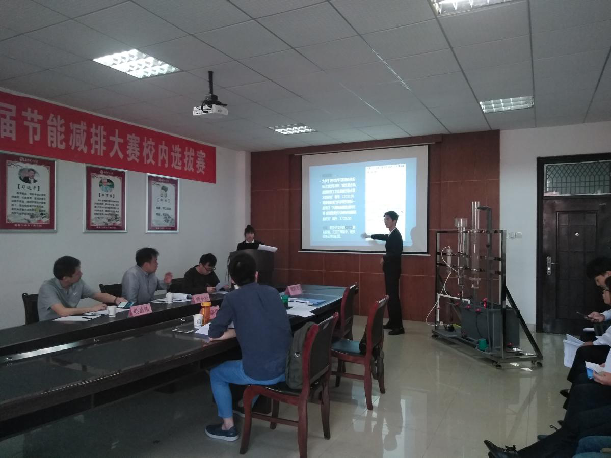 5月8日下午,第十一届全国大学生节能减排大赛校内选拔赛决赛于工一A422举行。能动学院李聪、顾小松、姜昌伟、刘亮、贺跃光、张晓烽六位专业老师担任本次校内选拔赛评委。