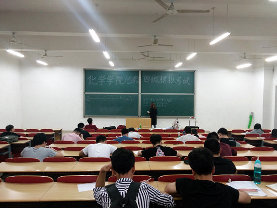 5月8日,化学学院在理科楼A100举行本学期第一次四级模拟考试,考试由年级辅导员江洁、15级年级组成员组织,82名未过四级的同学参加。