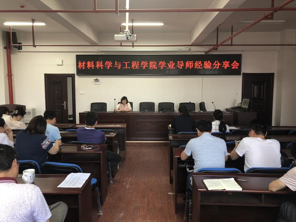 5月8日下午,材料学院在新能源大楼302举办学业发展全程导师经验分享会,材料学院全体学业导师参与,学院党委副书记唐青主持,学院2017年的优秀学业发展导师龚丽主讲。