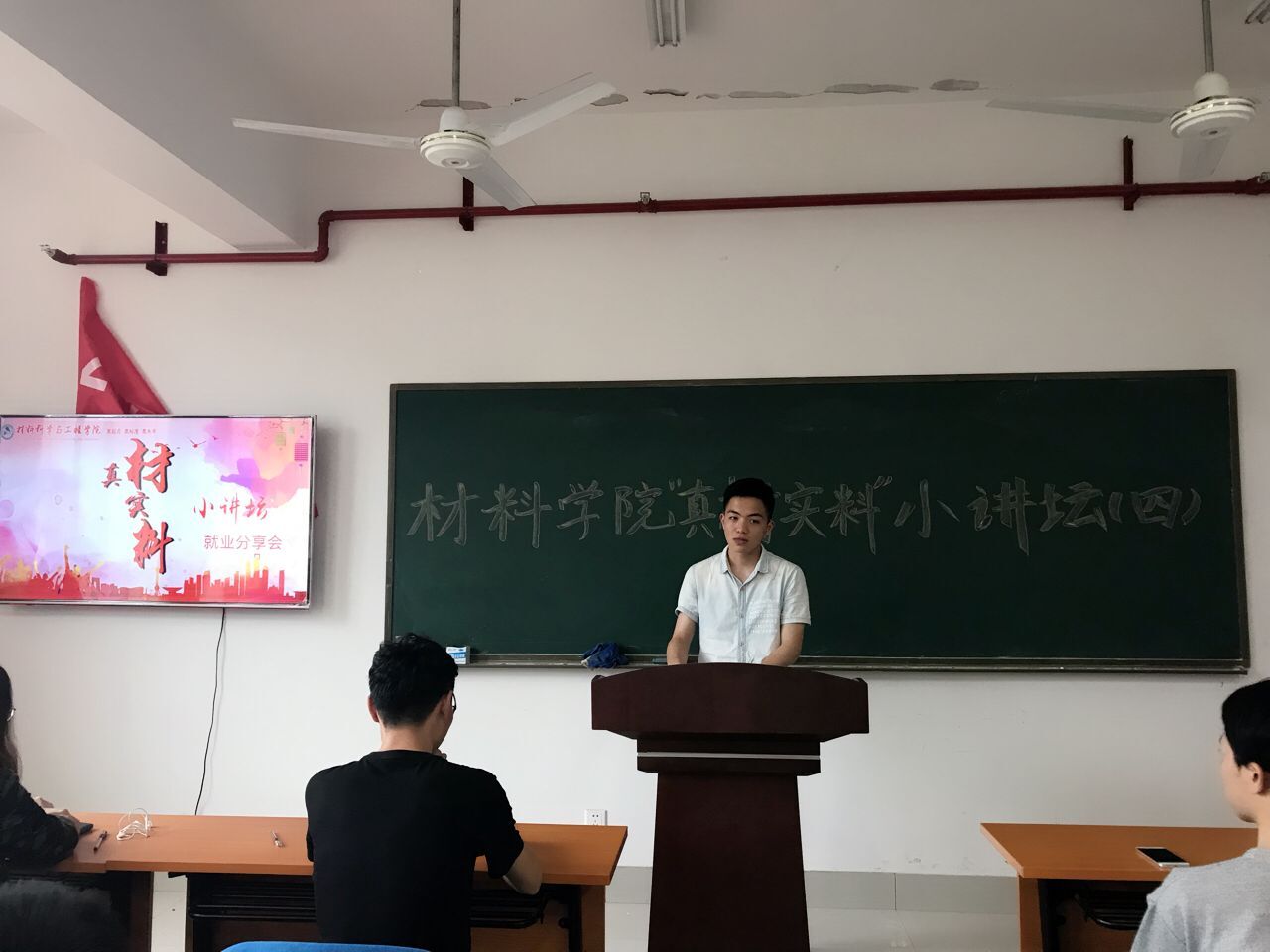 5月11日,材料学院于新能源大楼1号楼303教室举办“真材实料”小讲坛之就业考研分享会。本次分享会旨在解决15级学生在求职考研过程中遇到的各种问题,学工办谢易真老师、毕业生党员代表何天宝、付艺伟等出席。