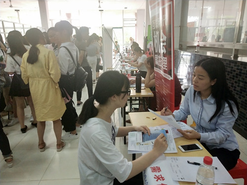 参会企业主要针对经管学院会计学、财务管理、金融学、市场营销、信息管理与信息系统等专业,为学院18届应届毕业生提供了就业机会,也为19届学生提供了宝贵的实习机会。招聘会现场气氛热烈、秩序井然,招聘单位前排满了投递简历和咨询的学生,一些优秀的学生凭借自己过硬的专业知识和出色的综合素质给用人单位留下了良好印象,在现场达成了初步就业意向。据不完全统计,有30名毕业生与用人单位达成就业意向;50多名19届毕业生将利用暑假时间到用人单位进行实习。