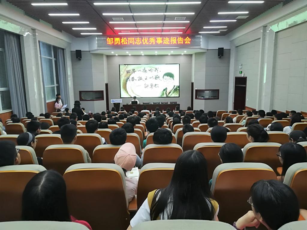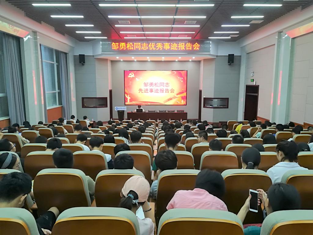 6月8日晚,邹勇松同学先进事迹报告会在云塘校区工科二楼举办。各学院老师代表、学生代表前往参会并认真学习。