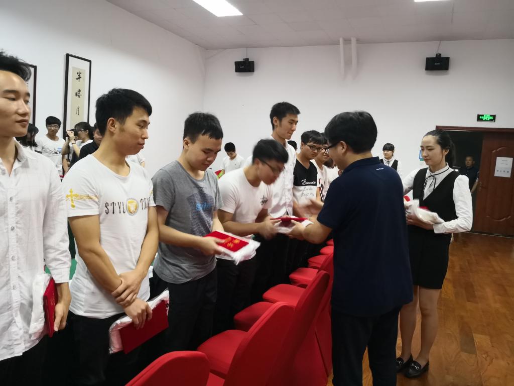 首先,钱国平宣读了学院2018届校友分会名单。学院2018校友分会设会长1名,常务副会长2名,副会长8名;设秘书长1名,副秘书长2名。会长、秘书长分别由梅志祥、曹骁担任。张美红、胡庆国、钱国平为31名校友分会成员颁发了聘书及交通青年校友战袍。