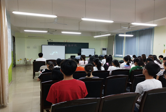 为响应学校号召,激发学生的政治觉悟和爱国热情,提高其思想境界以及责任担当能力,外国语学院于6月12日在文科楼A503会议室举行了“学习新思想千万师生同上一堂课”活动。本次活动由马克思主义学院易显飞教授讲授,共有来自外国语学院的50名学生参加。