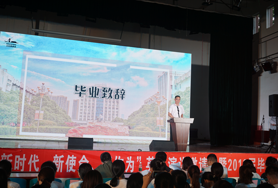 6月17日晚,外国语学院在创新创业园报告厅举行2018届毕业典礼,副校长蒋昌波,外国语学院党委书记甘为、院长段胜峰、副院长黄坚、武俊辉,党委副书记陈仁凯、学院外国语语言文学系全体教师和学院全体学生参加了本次活动。