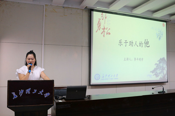 李平同学以“乐于助人的邹勇松”为题进行分享