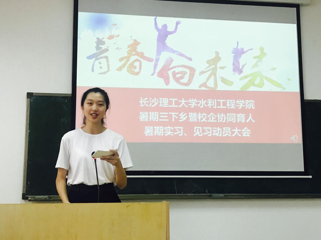首先院团委书记杜丘宣读了《关于开展水利工程学院2018年暑期“三下乡”社会实践活动的通知》。水利工程学院2018年暑期社会实践开展“一十百千”工程,围绕一个主题——洞庭湖保护与河长制推行,十名专业老师全程指导,百个重点团队同时开展,千人实践受益,让实践成为学生成长成才的重要抓手,并在安全教育、实践宣传、全员参与等方面提出了要求。
