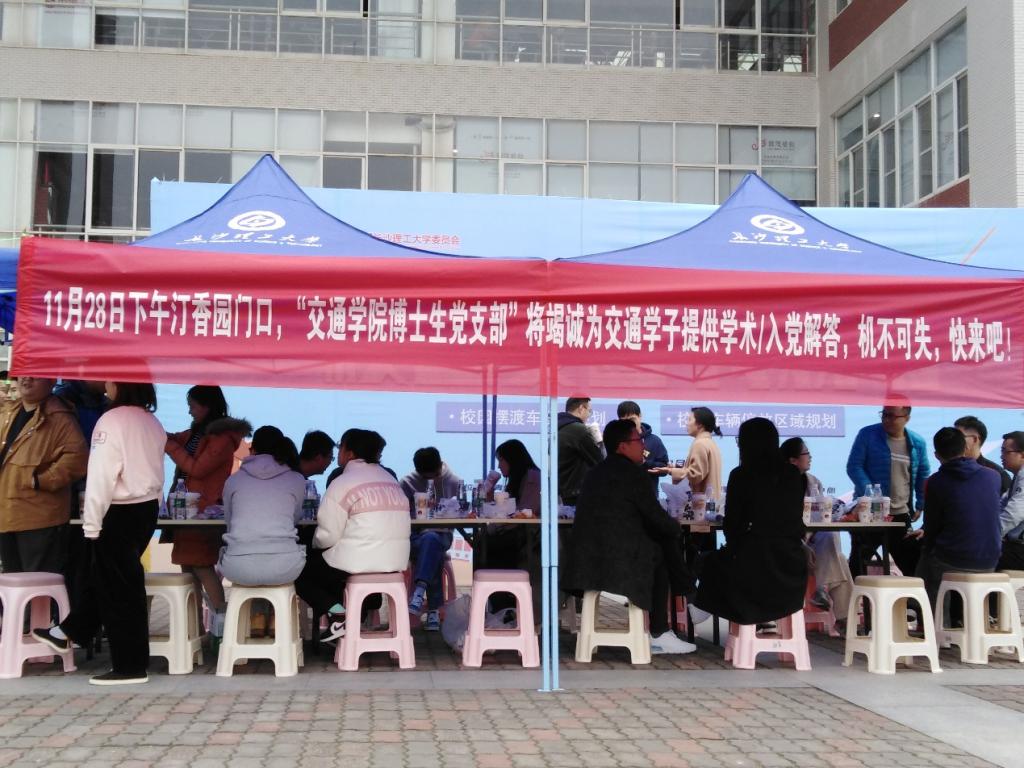 11月28日下午,在taptap点点体育云塘校区汀香园食堂门口,来自交通运输工程学院博士生党支部的30多名博士生聚集在一起,为前来咨询的学弟学妹答疑解惑。