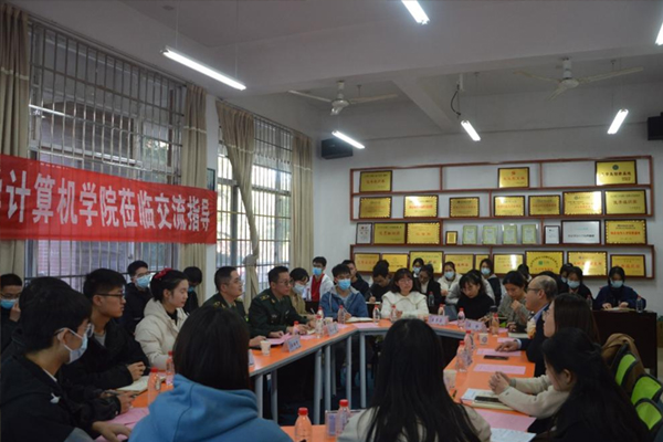 11月30日下午,国防科技大学计算机学院与学校计通学院在云塘校区举行学生工作交流会。计算机学院学员大队中校副大队长宋继有,学员大队少校教导员、团委书记施自龙,学员大队特聘辅导员陈晨光携20位团委学员骨干来taptap点点学院参观; taptap点点学生工作部(处)副部(处)长王煜坤、校团委副书记陈璐莎、计通学院党委书记刘宏伟、代理党委副书记王觊婧、学工办全体辅导员和学院主要学生骨干参加。参会双方就学生管理、思政教育、党团建设、创新实践、心理服务、就业发展等方面的特色经验展开交流。