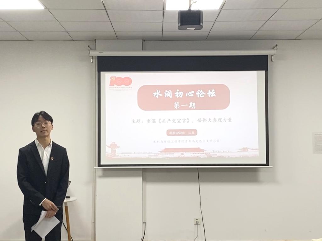 此次水润初心论坛,是水利与环境工程学院为加强党史教育,增强党员思想政治水平的新形式。学院在学校关工委的支持下,建成了青年马克思主义学习室,添置了一大批马克思主义经典著作,并以此为阵地开展各类理论学习研讨活动,重读经典,在个人自学、专题导学、师生共同研讨中引导学生不忘初心,坚定信仰跟党走。(文/黄远发 高银杰 图/李灿辉 任毅哲 审/银波)