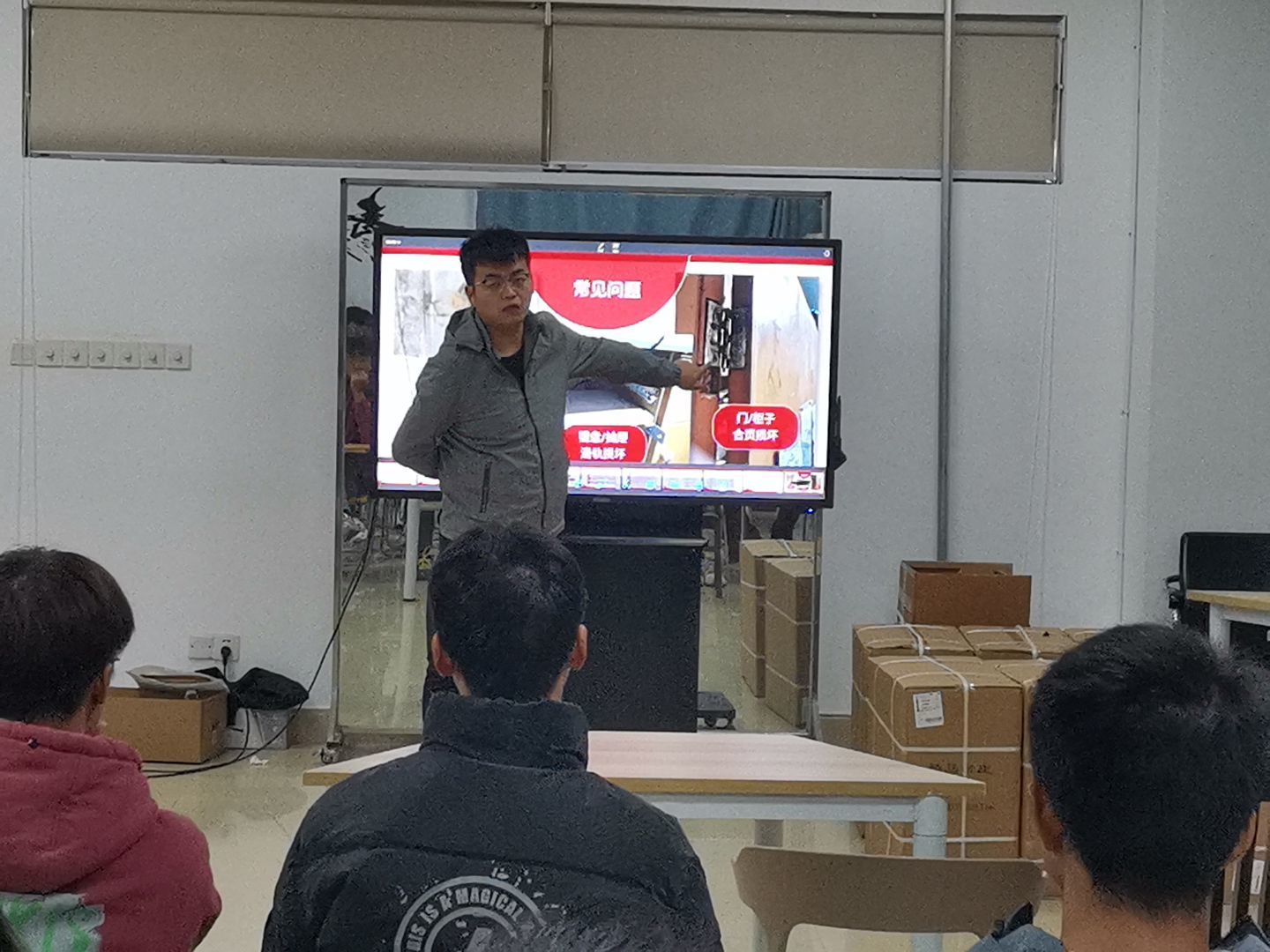 石现润为义务维修队成员进行业务培训。他指出,当前学生宿舍较常见损坏物有阳台/浴室插销、键盘/抽屉滑轨、门/柜子合页、浴室花酒、把手、桌椅等,并对插销、滑轨、合页、花洒、把手的更换安装步骤以及损坏桌椅的维修方法进行了详细讲解。