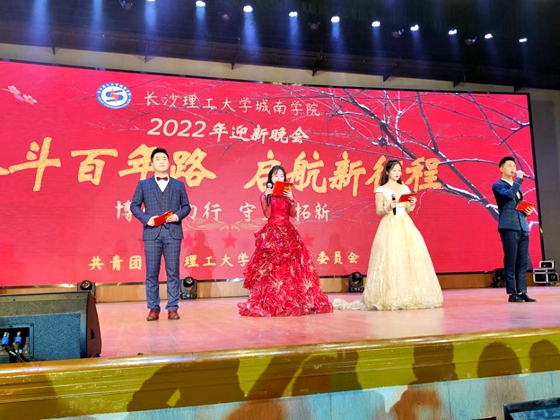 1月5日晚,城南学院2022年“奋斗百年路 启航新征程”迎新晚会在金盆岭五教大礼堂举行。城南学院党委书记李修春、副书记陶传谱以及相关师生共1000余名观看了晚会。