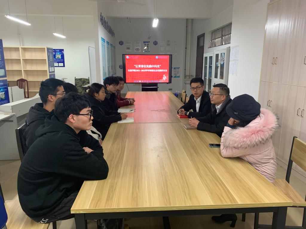 1月7日下午,交通学院于工科二号楼B-415召开2021-2022学年寒假社会实践研讨会,会议主题为“让青春在实践中闪光”。此次研讨会由交通学院团委书记彭笠主持,交通学院党委副书记涂道勇、运物系周爱莲副教授以及部分寒假社会实践专项成员与会。