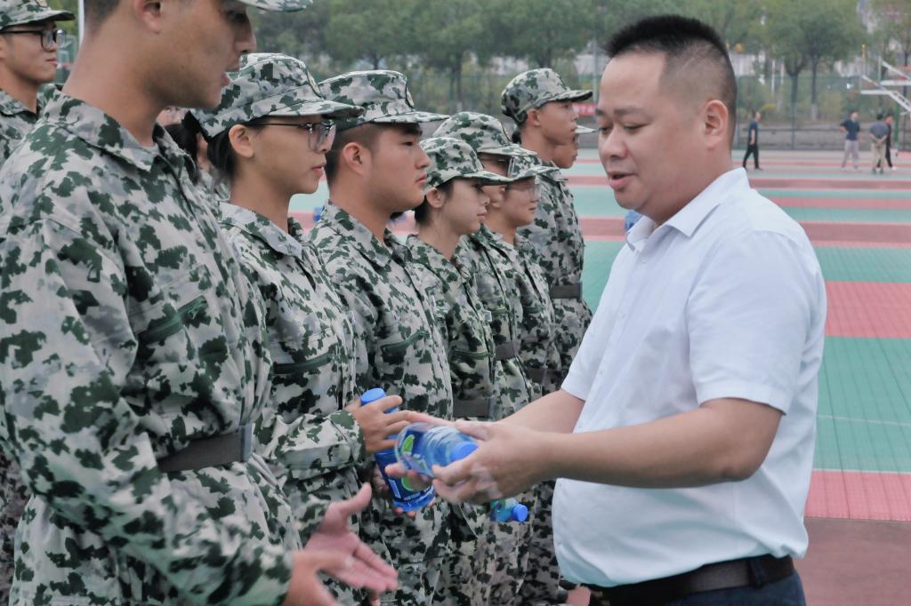 毛卫国还代表学院为全体教官及军训负责人送上慰问品,并叮嘱要科学组训、劳逸结合,保障军训安全与实效,让同学们真正从训练中受益、在挑战中成长。