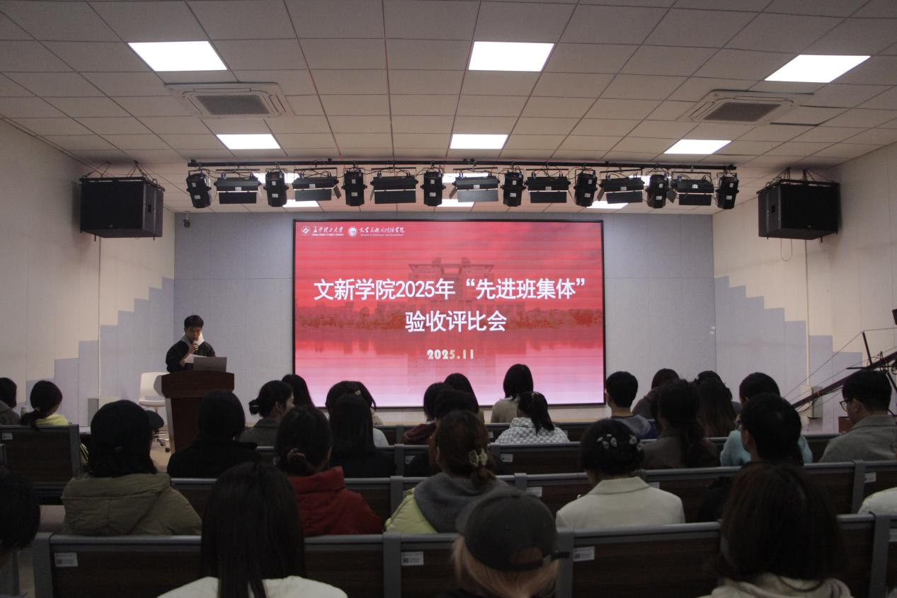 11月25日下午,文新学院在金盆岭校区九教113演播厅开展2025年“先进班集体”验收评比活动,学院党委副书记刘莎,辅导员李婵、李心怡出席并担任评委,各班级班干部参会。