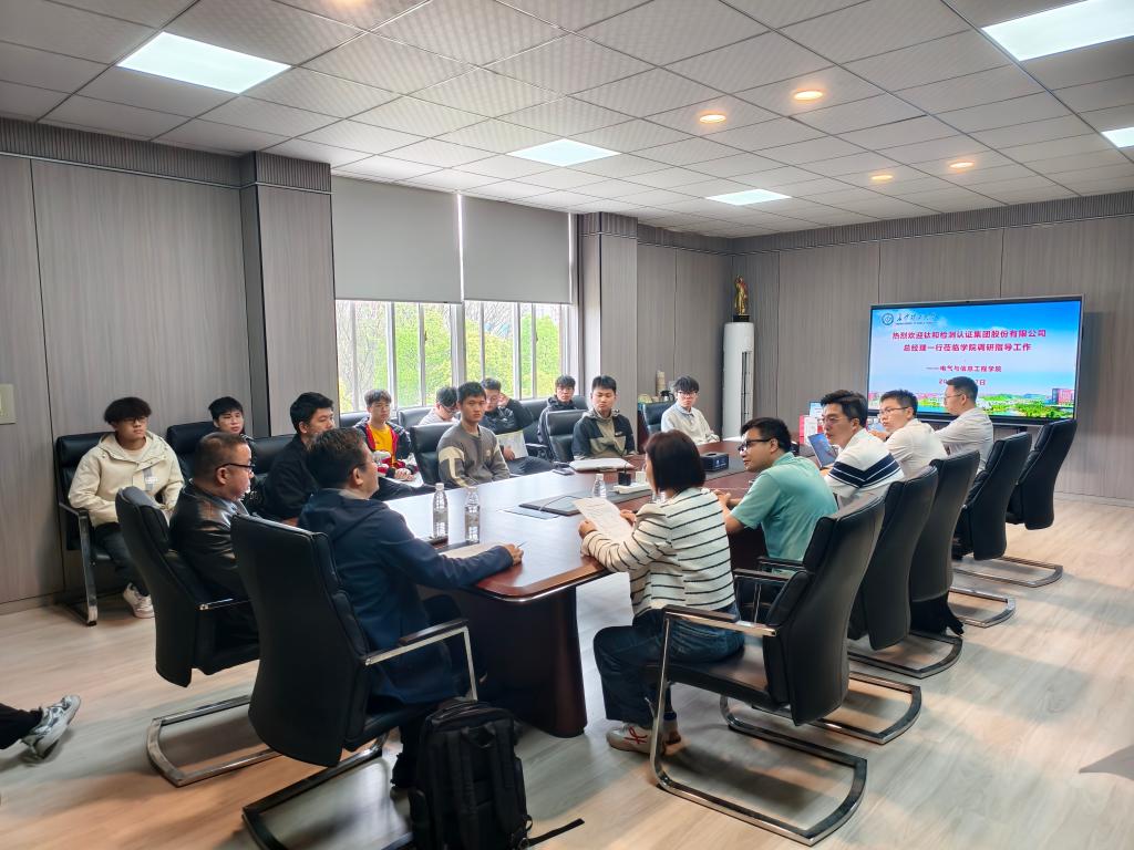 钛和集团总经理文新龙、技术总监黄合欢等四位领导与学院陈众、杨廷芳教授,科研办主任金维香、就业办主任楚艳鸽等开展座谈会,双方就电力电子仿真建模、新能源场站测试等关键技术议题展开了深入探讨。电气学院在电力系统仿真建模方面拥有深厚的学术积淀,与钛和集团在新能源检测认证领域的核心业务高度契合。双方表示,未来将在科研项目攻关、资源共享及联合人才培养等方面进一步深化合作,助力我国新能源产业的绿色转型。