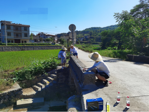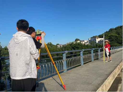 车田村内桥梁建成时间久、设计标准低、维护时间少,为乡村通行埋下了安全隐患,实践团对其中损伤情况较为严重的5座石拱桥进行了检测。此外,竹市大桥作为连接村与镇之间的纽带,桥面通车量大、桥下船只通行频繁等都影响了桥梁的结构性能。博士实践团对竹市大桥及石拱桥的结构形式和交通量等基本情况进行初步了解之后,详细测量了桥梁的桥长、桥宽等细部尺寸。同时,通过全站仪测量了竹市大桥桥面标高及高程。依据《公路桥涵养护规范(JTG5120—2021)要求,对重要部位进行全方位、细致的检查,“桥梁铺装层因缺乏养护出现松散脱落,桥台受到水流的冲刷痕迹也很明显。”团队成员晏万里根据石拱桥测量结果说道。考虑到村民通行需求,博士实践团提出了拼装式块件拱桥加固方案,这种加固方法易于施工,造型美观,为车田村的通行及生活便利提供了保证。