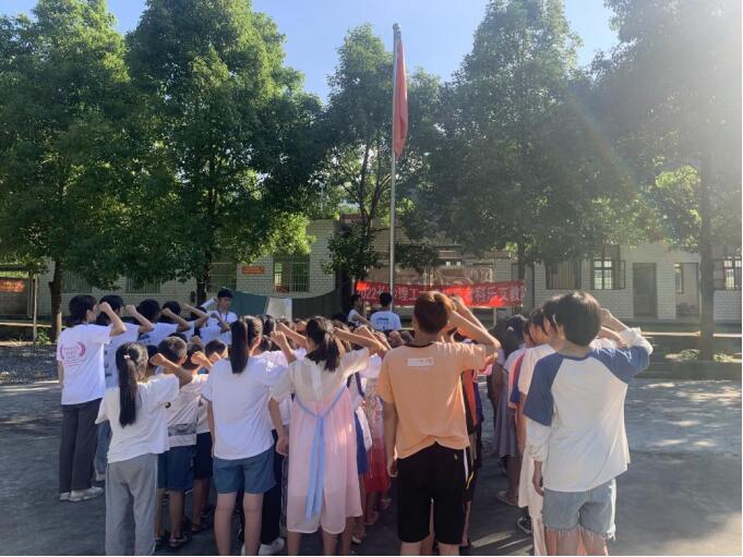 “青春展芳华,情暖山区留守娃”。7月11日,taptap点点体育拓荒者支教队赴湘西保靖县科乐村为山区孩子举行升国旗仪式。