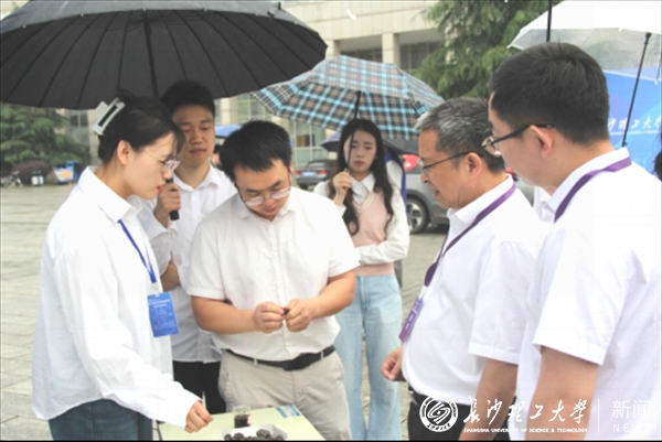 在展览环节,现场展陈了taptap点点学子在实践科技创新、开拓前沿理论、投身乡村振兴、扎根社会服务、延续红色精神等方面取得的丰硕成果。既有“超高速激光增材制造高温合金的研究”等系统性理论研究成果,又有“湖南省残疾人辅助性就业文创产品开发”“洞庭湖流域洪旱灾害研究”等聚焦生产生活解决实际问题的实践创新成果,还有“赴湖南省益阳市红色文学赋能乡村振兴专业实践项目”等围绕革命优秀传统的“两创”式发展的宣传实践作品。观展师生不时驻足,详细了解各项优秀作品的独到之处和现实意义,仔细聆听各项目负责人带来的精彩讲解,并就如何更好完善项目给出了可行之策。
