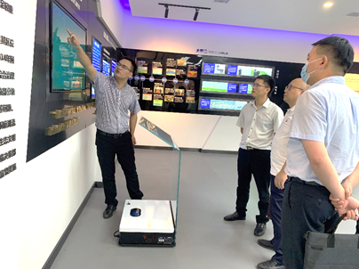邓斌向李前君一行介绍了洞庭湖基本概况、目前所面临的机遇与挑战、实验室发展目标,以及洞庭湖实验室的建设历程、主要研究方向等,重点介绍了智慧洞庭综合信息化平台,并对“一一四”防汛减灾智慧使能平台及全天候采砂监管等模块的实际应用情况进行了详细展示。此外,还对实验室正在研发的覆盖水利、水运、道路及农业等领域的湖南省水灾水害预警信息化服务平台和智慧城市可视化平台进行了介绍。