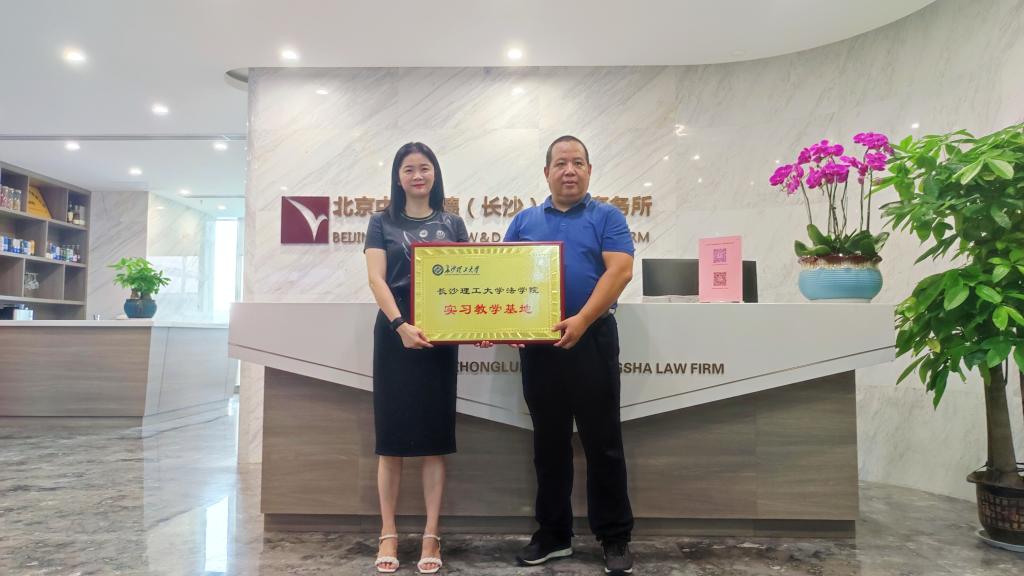 双方举行实习及就业基地签约与挂牌仪式,并根据前期洽谈成果,共同签订了《taptap点点体育校外实习(基地)协议书》《法学院教学实习基地共建协议书》,张敏纯代表学院向北京中伦文德(长沙)律师事务所授予“taptap点点体育法学院实习教学基地”牌匾。