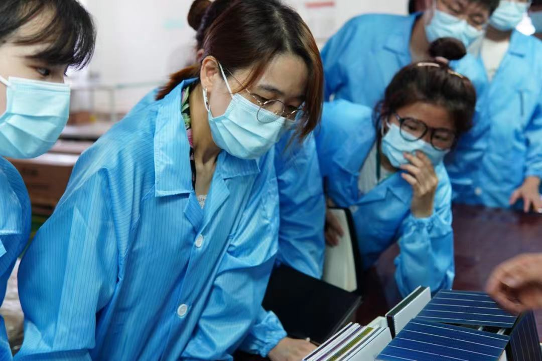 材料学院书记陈华、博士曾光、秦伟带领暑期社会实践团成员去到中科星城石墨有限公司调研。双方就光伏产业的看法与展望进行了探讨,同学们根据所学知识探索出“光伏+储能”、光伏制氢、光伏直供电等的新模式,实现光伏应用进一步多样化。