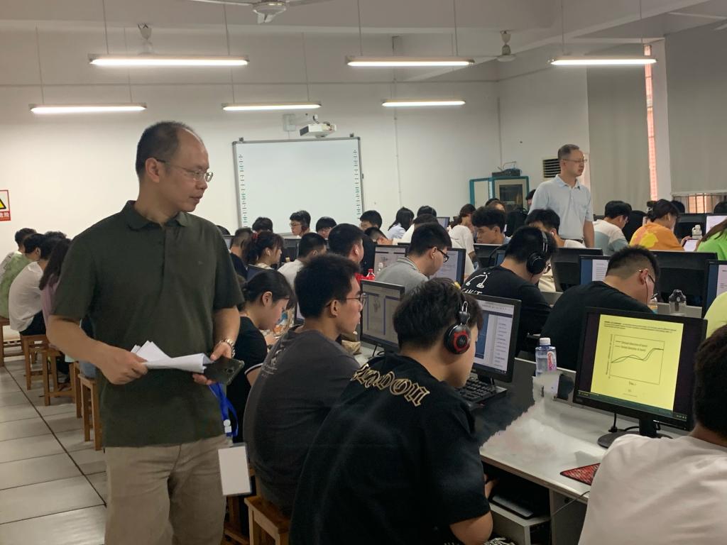 刘朝晖首先带队到云塘校区理科楼中外合作办学项目(电气工程及其自动化专业)2019级引进课程《控制系统I》的“线上+线下”融合式课堂,对外教线上授课和助教随堂助课情况、学生到课和听课状况、教室教学环境和教学设备运行保障等进行了检查,并在课前与授课老师和同学们进行了亲切交流,了解同学们的开学状态。