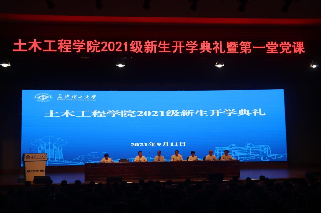 9月11日晚,土木学院于金盆岭校区五教大礼堂顺利举行2021级新生开学典礼暨第一堂党课。学院全体班子成员,各科(系)室主任,2021级全体班主任、辅导员,部分下班干部及2021级全体新生参会。本次会议由学院党委副书记黄阿明主持。