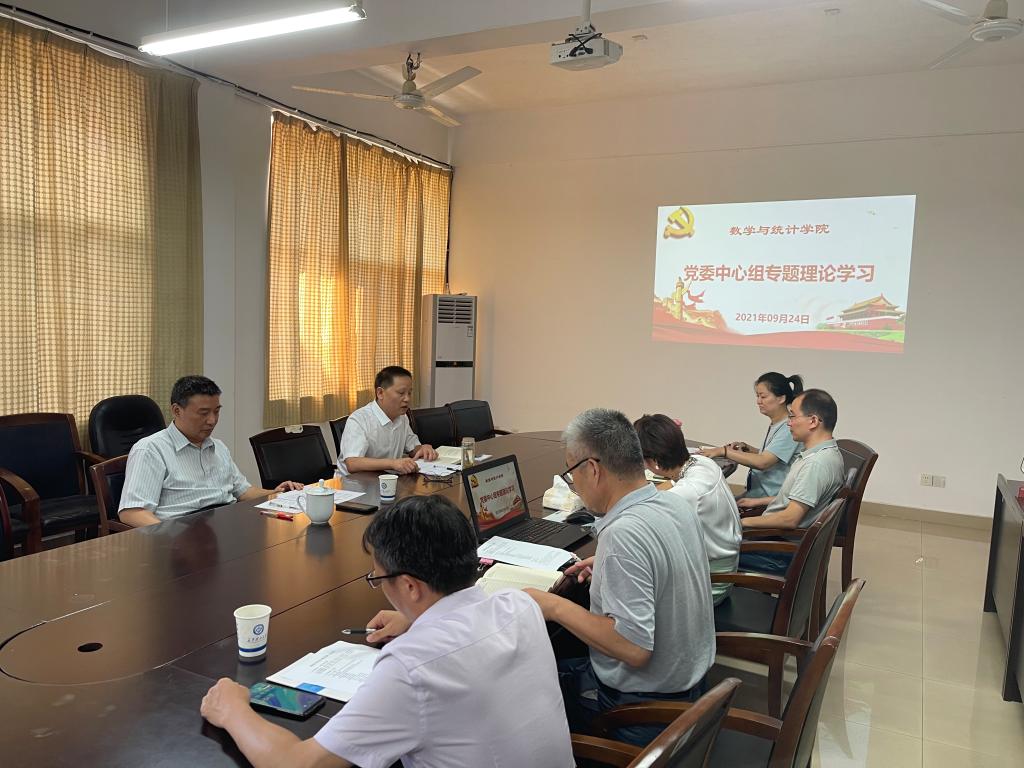 9月24日上午,数统学院党委理论学习中心组在理科楼A410开展专题理论学习,学院党委班子成员参加,党委书记邓崛峰主持。