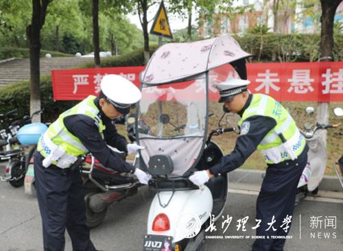 “同学,骑电动车一定要戴好头盔”“车上不能加装伞具”“不能违规载人”……通过现场示范教育和《中华人民共和国道路交通安全法》《湖南省电动自行车管理办法》《长沙市城市道路交通管理规定》等法律法规讲解,天心区交警大队的警官们和学校保卫处工作人员向同学们普及日常出行交通安全知识,提醒他们自觉遵守交通法规。针对校园内的电动车驾驶情况,天心区交警大队孟警官提示同学们:“一定要规范驾驶电动车,不能酒后驾驶、不能逆向行驶、不能超速超员,要在指定位置有序停放,不妨碍和影响其他车辆及行人通行。”