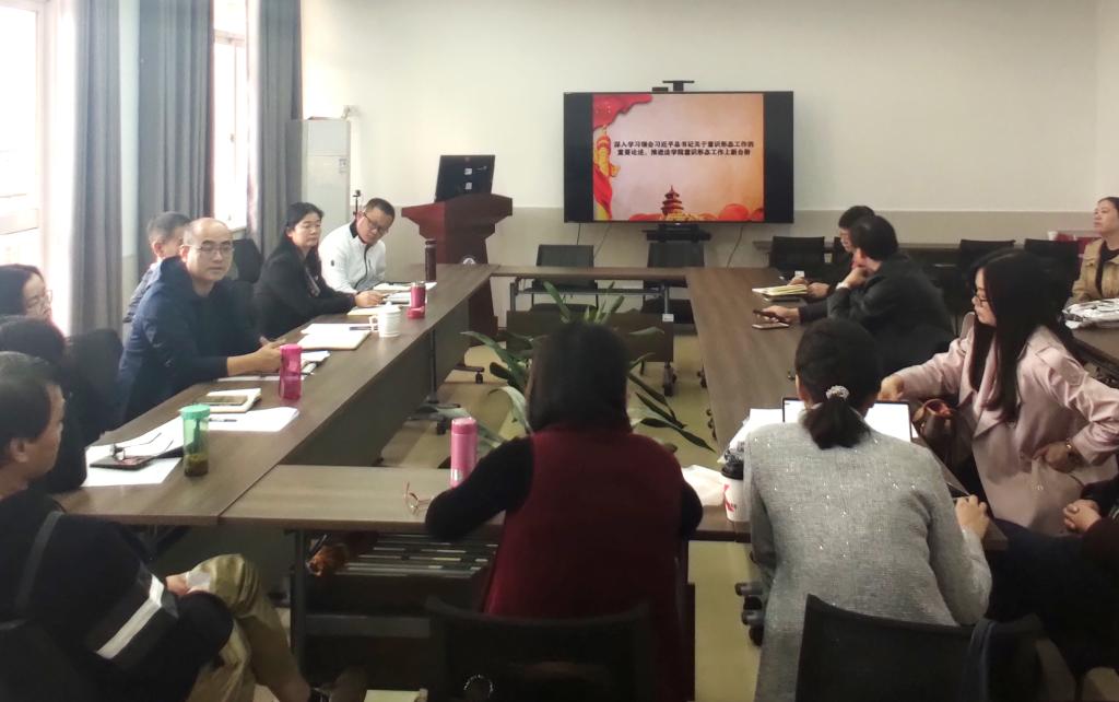 10月19日下午,法学院在文科楼C616多功能报告厅组织召开意识形态工作专题学习会议,全体教职工参加院长张敏纯主持学习会。