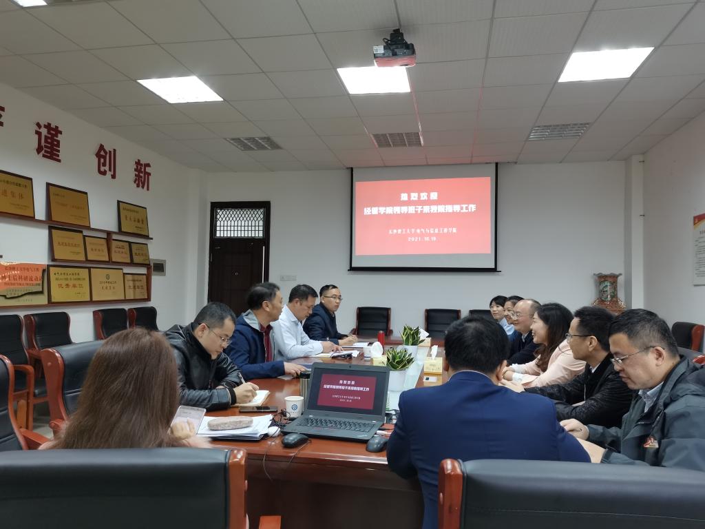 10月19日上午,电气学院与经管学院领导班子成员在云塘校区工一B505联合开展中心组理论学习研讨,学习贯彻落实校党委书记付宏渊、校长曹一家在新学期第一次党政联席扩大会议和学院调研会上的指示精神,深入推进党史学习教育“我为群众办实事”实践活动。