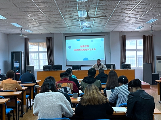 11月1日下午,城南学院在金盆岭2-201召开师德师风教育学习大会,进行师德师风教育学习宣传动员,并开展第一次集中学习活动。院党委书记李修春主持学习。全体教职工与会。