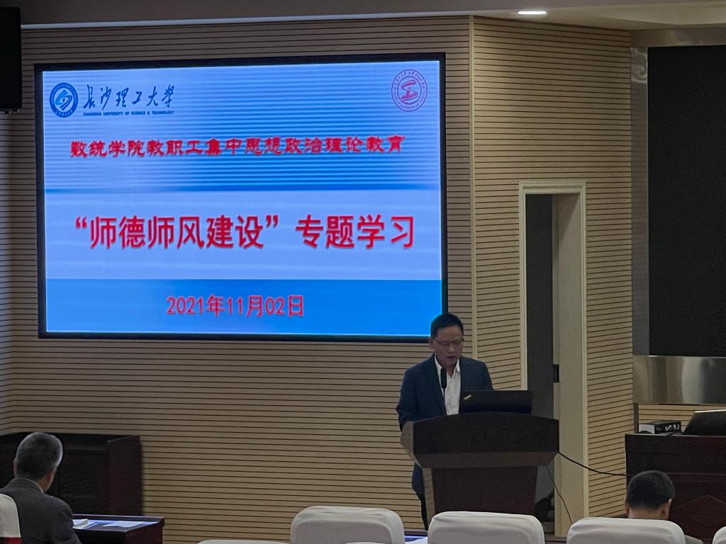 11月2日下午,数学与统计学院在云塘校区理科楼A200召开“师德师风建设”专题学习会。学习会由党委书记邓崛峰主持,学院全体教职工参加。
