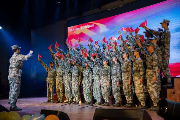 “杀!杀!杀!”《战术动作汇演》的口号响彻整个会场,为晚会表演拉开序幕;舞蹈节目《决胜魔鬼营》用沉浸式的表演展现出了中国军人的坚韧不拔、团结一致;《我们走在大路上》气势宏伟、振奋人心的大合唱将晚会气氛推向高潮。晚会分为初心、华章和新程三个篇章,节目涵盖了战术动作、舞蹈、舞台剧、合唱和歌曲演奏等类型,皆由民兵连学生编排和参演,既展示了民兵连同学们多才多艺的形象,也表达了他们拥军爱国的深厚情怀。