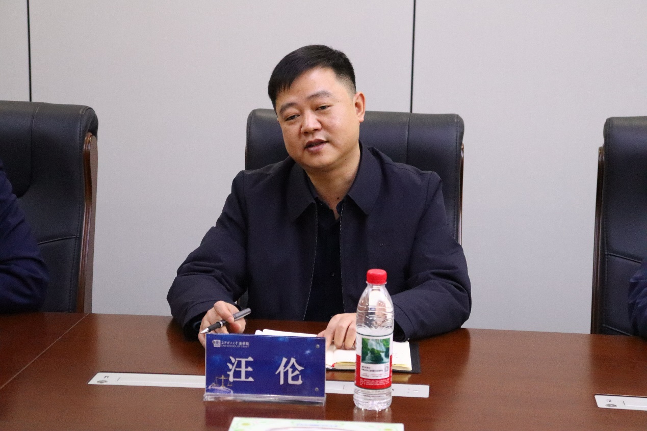 汪伦介绍了学院基本情况、学科专业优势以及开展法律援助工作的基础与成效。他表示,学院已设立固定法律援助办公场所,拥有专业的指导老师团队,学生法援团常态化开展法律服务活动。希望能在长沙市公共法律服务中心的指导下,进一步规范运行,协力推进“法律援助工作站”授牌工作。