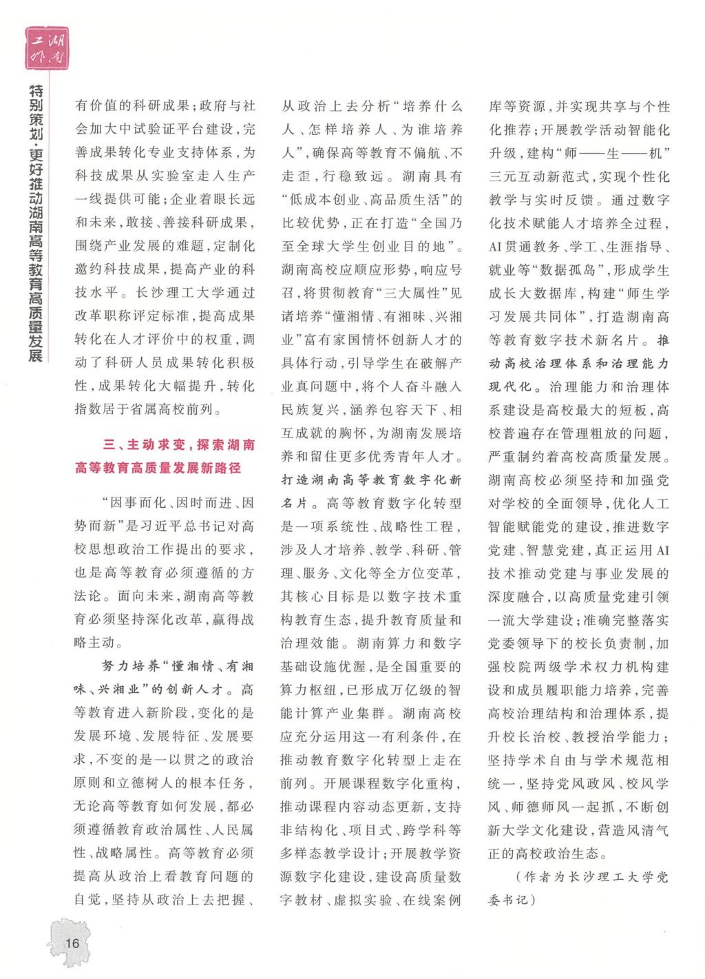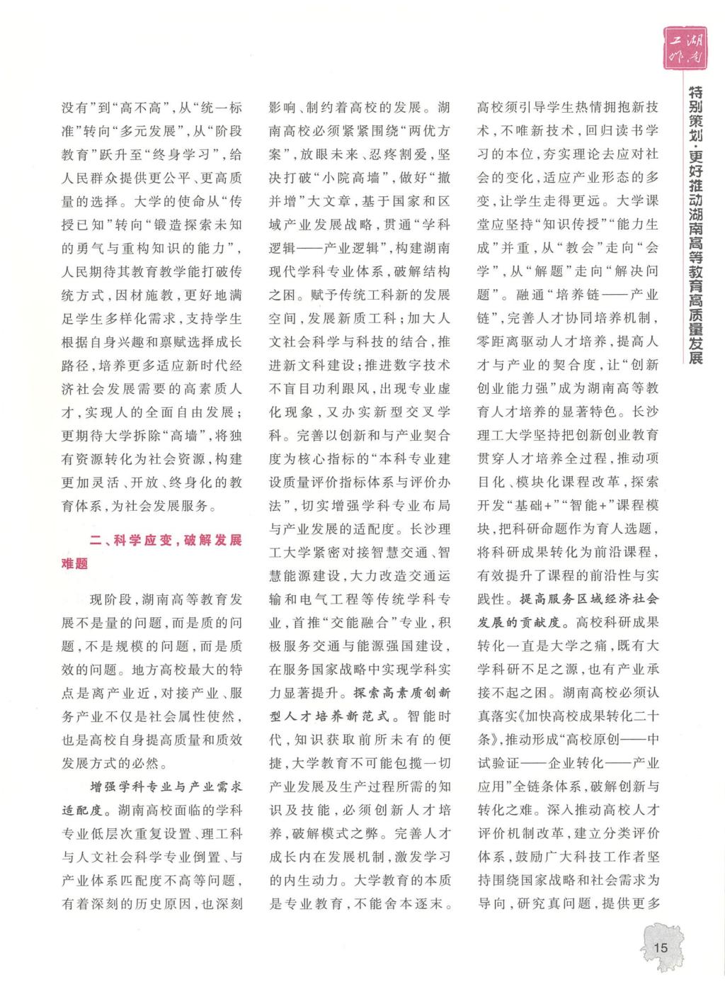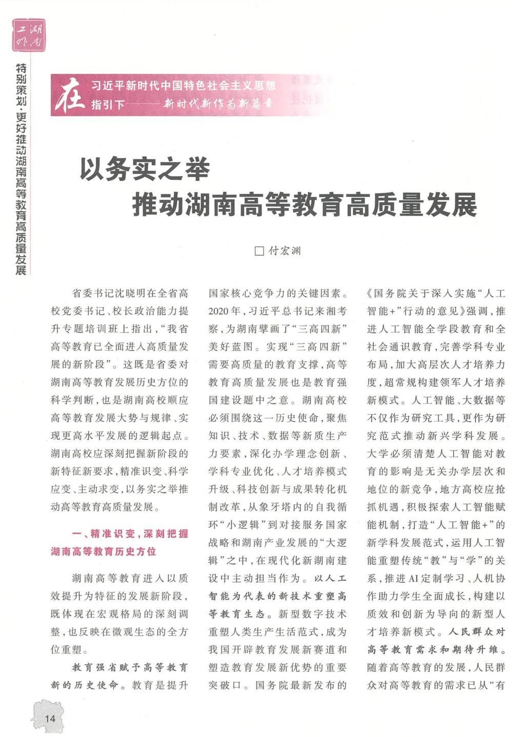 湖南工作:付宏渊:以务实之举推动湖南高等教育高质量发展