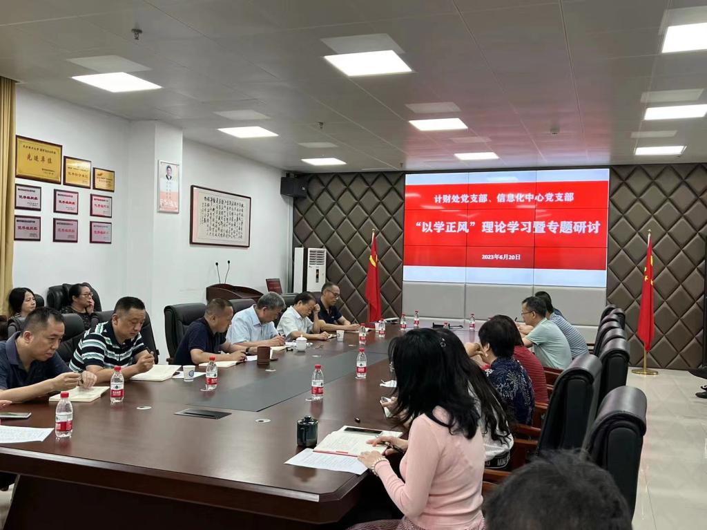 6月20日上午,计财处党支部和信息化处党支部在图书馆A911室联合举行“以学正风”理论学习暨专题研讨。校党委委员、副校长谈传生到会指导。计财处处长颜鲜明、副处长郑永生,信息化处处长王威、副处长向永生和高捷作学习发言。会议由王威主持,计财处党支部和信息化处党支部全体党员参加 。
