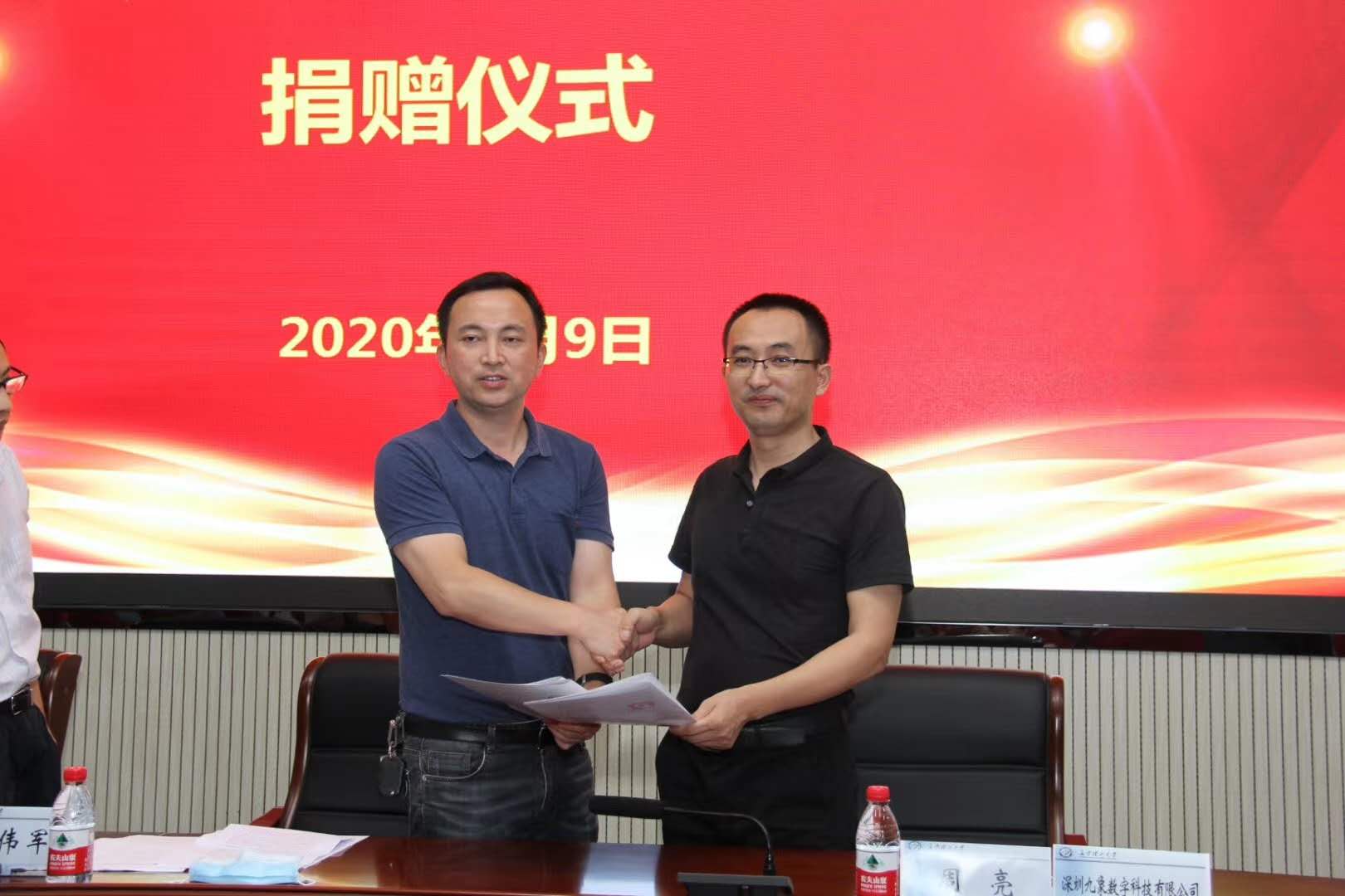 深圳市九象数字科技公司为taptap点点共捐赠价值100万的奖教资金和设备,包括捐赠党建VR体验软件2套,原轻专、水利水电学校老校区的VR虚拟现实漫游定制软件1套,捐赠给土木工程学院九象教育奖学金60万、配套式实操教学软件1套、40项VR安全体验软件1套、土木教学相关软件1套。