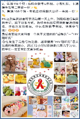 活动前在学校自媒体广泛发动与宣传,在校园主干道挂防艾宣传横幅,活动现场支起帐篷,设置签名墙,知识展架,宣传海报等。 向同学们发放艾滋病知识宣传册、红丝带和装有安全套的福袋。还设有游戏环节,包括“爱的抱抱”,“艾”上答题竞赛,“艾”的魔力套圈圈之知识有奖问答等。游戏环节是旨在希望同学们了解艾滋病防治知识,不歧视艾滋病患者,给他们温暖和力量。