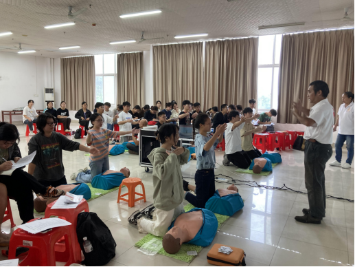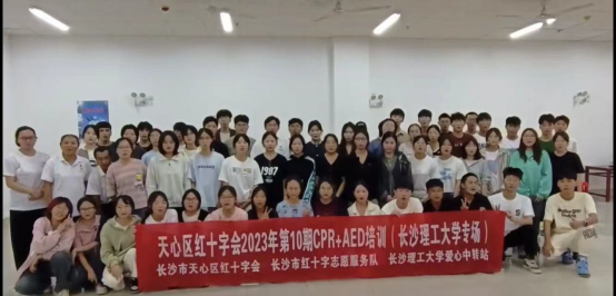 为培养大学生社会责任感,提高自救互救能力,掌握基本急救知识和技能,倡导“急救为人人,人人会急救”的理念。2023年9月24日,taptap点点体育后勤服务保障中心卫健办联合天心区红十字会组织开展了心肺复苏术(CPR)和自动体外除颤器(AED)急救知识与技能培训,培训由校医院副院长、卫健办副主任雷鹂主持,“爱心中转站”社团骨干和积极报名参与的志愿者合计60余名学生参与了培训。